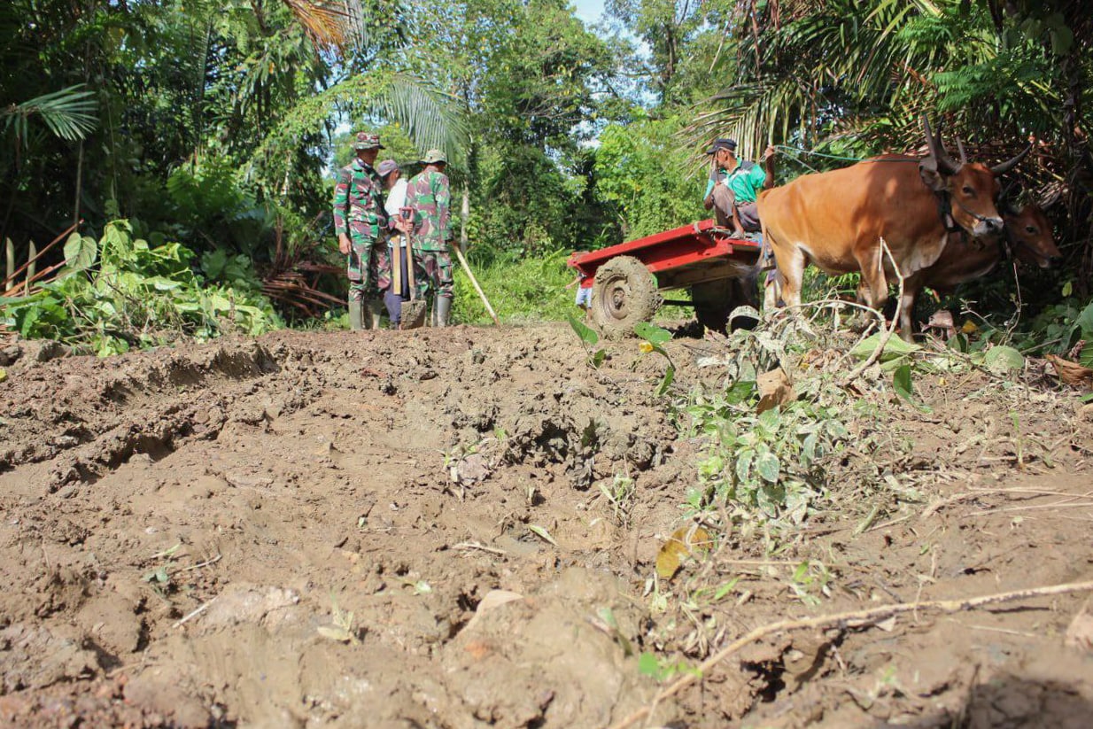 Lebih lanjut Kapendam XIII/Merdeka menjelaskan, bahwa dengan semangat kemanunggalan antara TNI dengan rakyat, mereka berbondong-bondong untuk saling membantu membawa material menuju lokasi dengan menggunakan gerobak sapi.