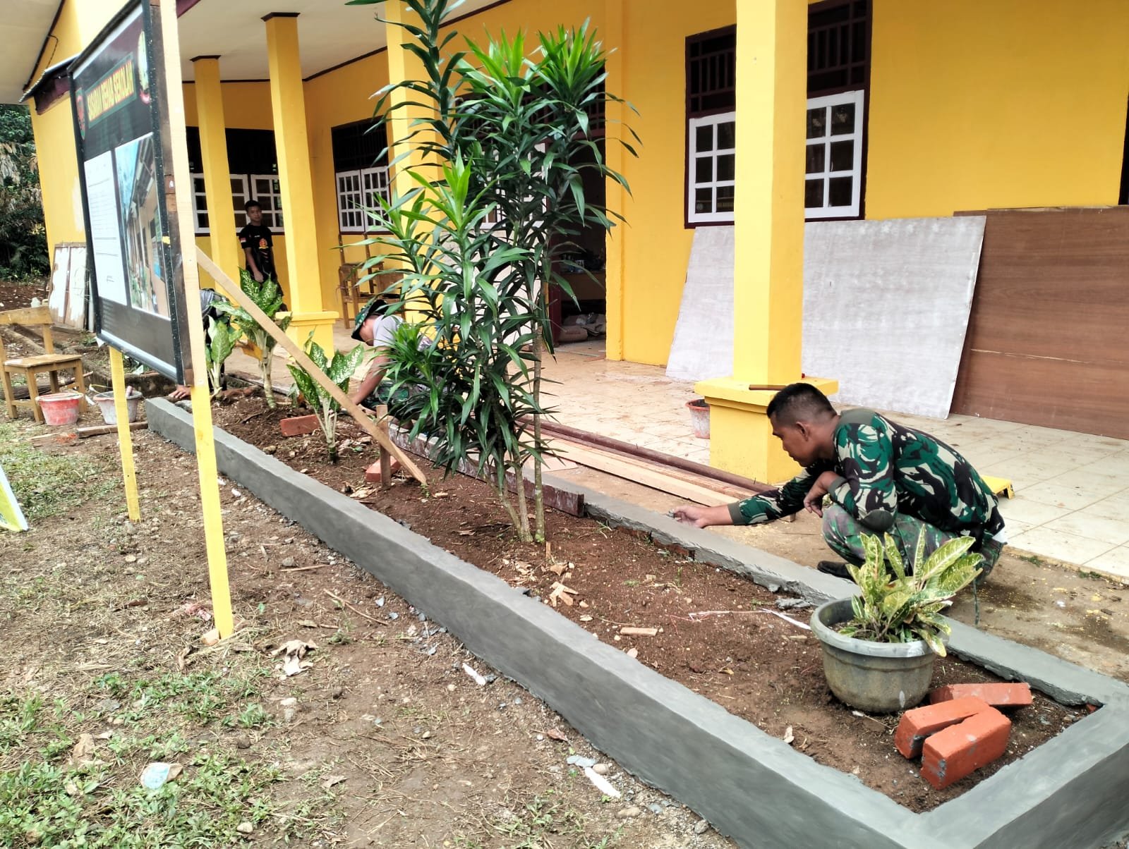 Satgas TMMD Ke 117 Selain Rehab Gedung dan Bangun Tower Air Juga Buat Taman Bunga SD 57/II