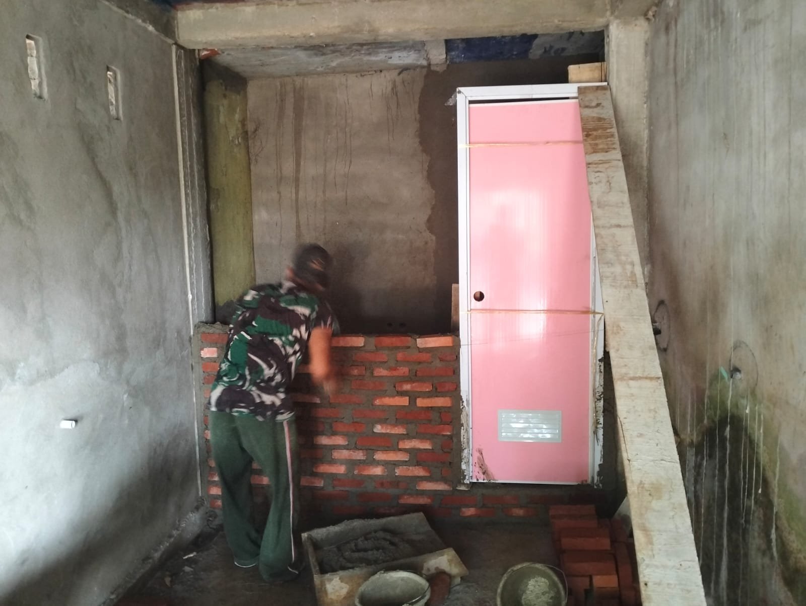 “Kita sudah mulai pemasangan pintu MCK dan saya yakin tidak sampai memakan waktu lama pemasangan ini cepat selesai, karena anggota satgas dan warga saling bantu. Mereka dibagi-bagi dalam tugasnya,” kata Sertu Ridwan.