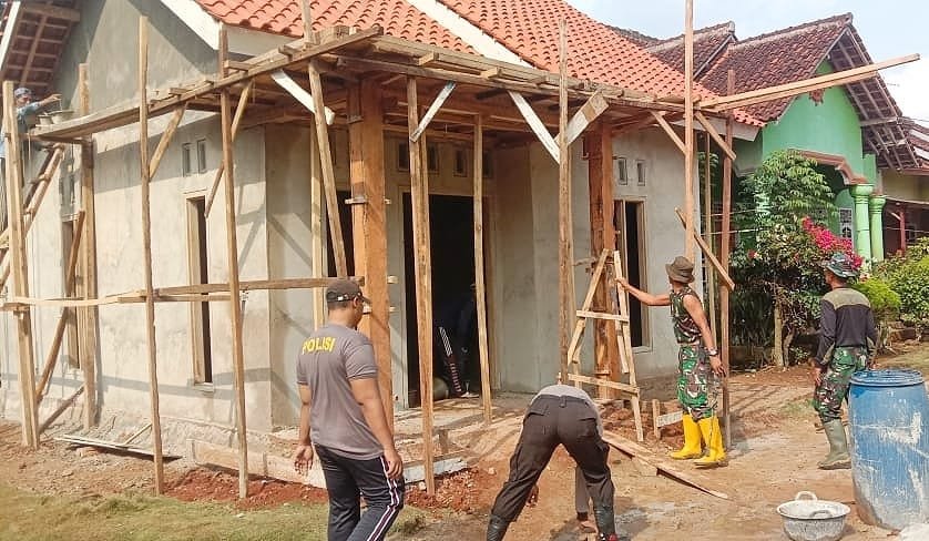 Serma Antoro di lokasi bedah RTLH milik Bapak Juhaidi (52) menjelaskan progres pembangunan tinggal pengecatan rumah dan pemasangan keramik.