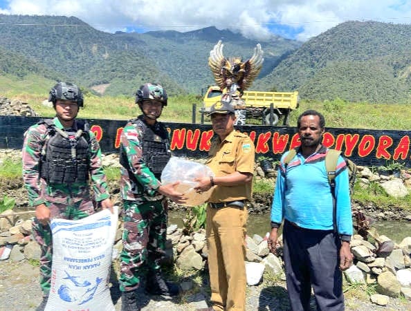 “Sumbangan ini merupakan bentuk dukungan pemerintah setempat terhadap upaya satgas untuk menjadi contoh dalam mempelopori budidaya ikan Mas di Kab. Puncak Jaya, bibit ikan diterima oleh Dansatgas dan akan dibudidayakan di kolam ikan Kotis.