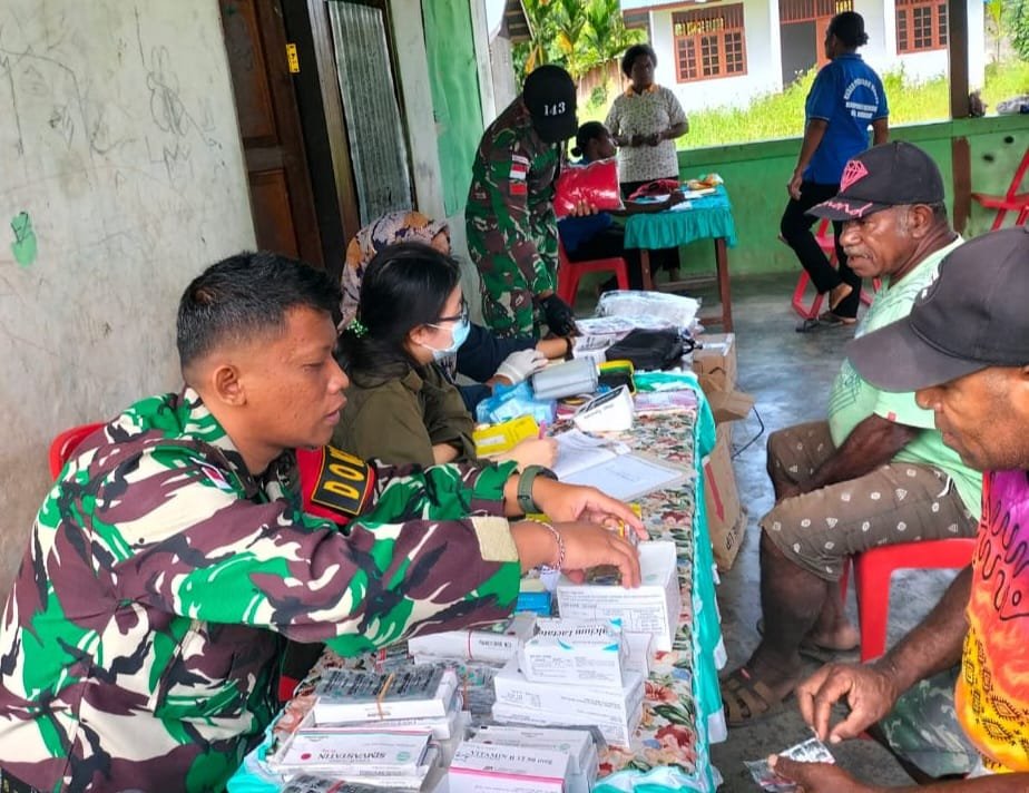 Satgas Yonif 142/TWEJ Beri Layanan Kesehatan ke Lansia dan Siswa di Perbatasan RI-PNG