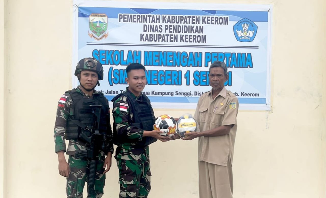 Pada kesempatan ini, Satgas memberikan bantuan Bendera Merah Putih, Buku bacaan dan alat-alat olahraga guna meningkatkan Nasionalisme, minat membaca, dan olahraga. Sehingga diharapkan melalui jalur pendidikan akan tercipta generasi sehat, cerdas juga cinta tanah air.