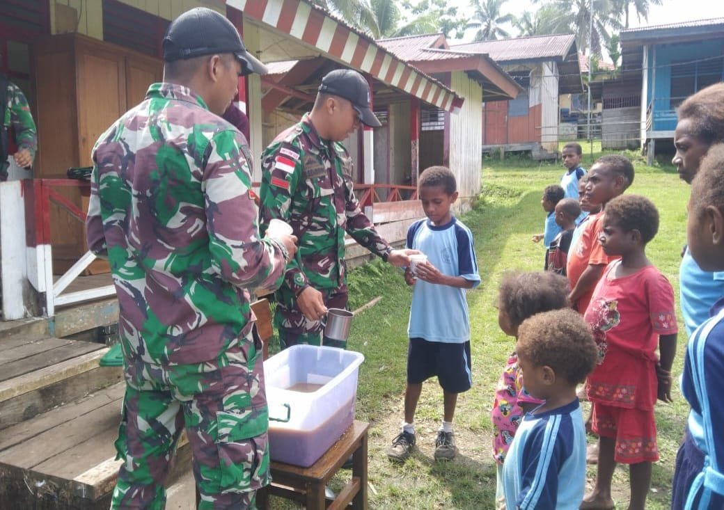 Kegiatan yang dipimpin oleh Serda Kiki Anggara Yudha disambut gembira pihak sekolah dan seluruh siswa SDN Inpres Yabanda yang mana pada kesempatan ini Satgas bersama para siswa melaksanakan olahraga bersama dan permainan yang diakhiri dengan menikmati extrafooding minum susu untuk meningkatkan asupan gizi siswa guna menunjang aktifitas belajar siswa.