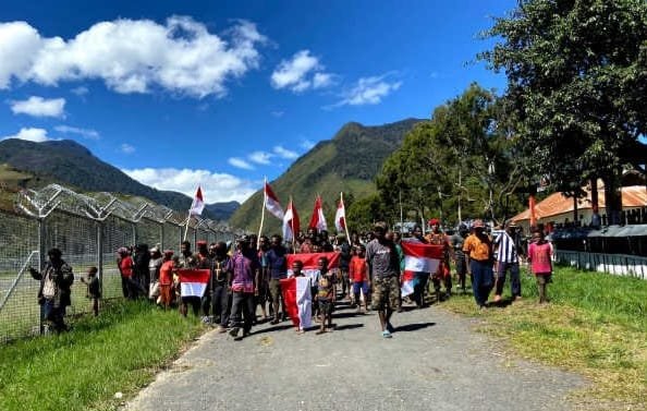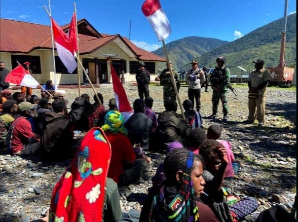 NASIONALXPOS.CO.ID, PUNCAK JAYA – Pagi yang cerah di Distrik Illu terlihat ada kegiatan yang unik yaitu Pawai Bendera Merah Putih yang diikuti oleh masyarakat dan dikawal oleh aparat keamanan setempat, tak terkecuali anggota dari Posramil Illu dari Satgas Pamtas RI-PNG Kewilayahan Yonif R 712/Wiratama yang sedang melaksanakan tugas di Kab. Puncak Jaya. (Selasa, 30 Mei 2023)