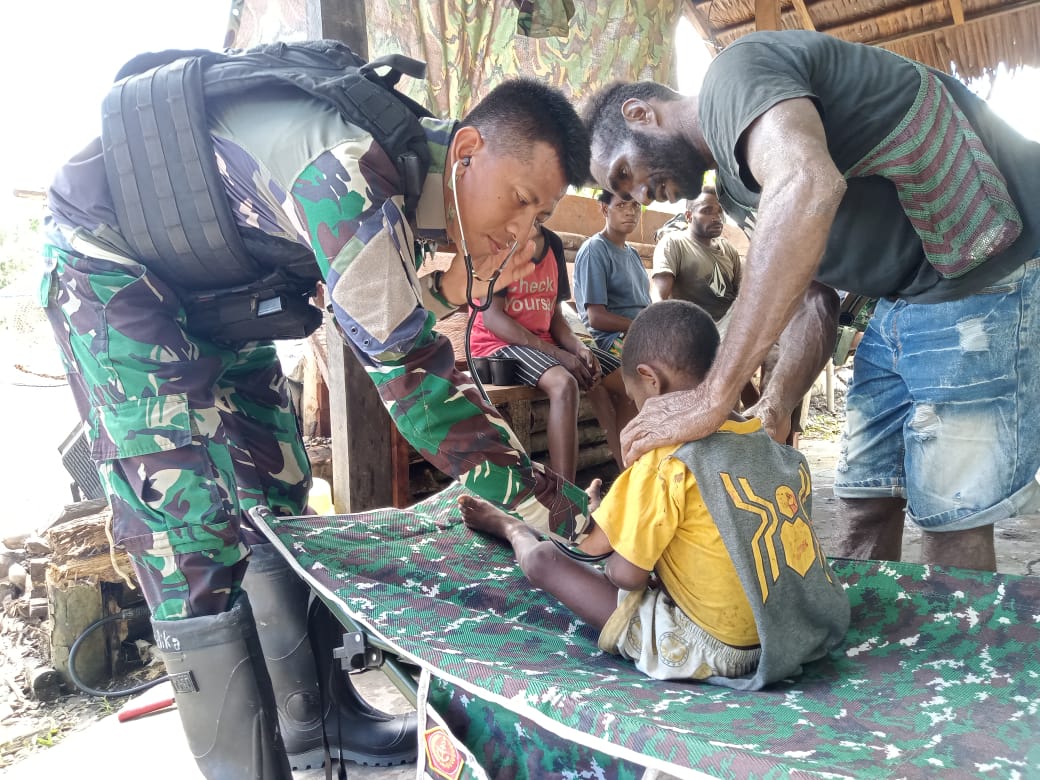 NASIONALXPOS.CO.ID, PAPUA – Prajurit TNI Satgas Yonif Raider 200/BN, memberikan pelayanan kesehatan gratis kepada warga yang datang berobat di Pos Kekey, Kampung Kekey, Distrik Dekai, Kabupaten Yahukimo, Papua Pegunungan, Jum’at (19/05/2023).