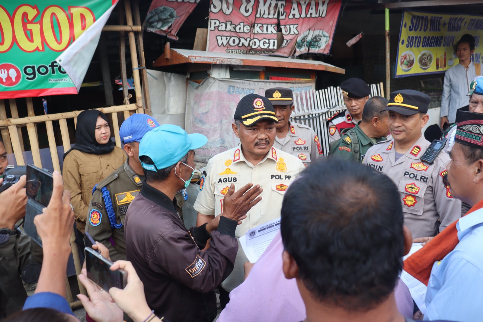 Pemagaran pintu akses masuk area pasar ditandai dengan pembacaan surat perintah Pj Bupati nomor 800/5390-SPPP Tahun 2023. Surat tersebut berisi penertiban dan pembongkaran kios, los, grosir dan bangunan liar.