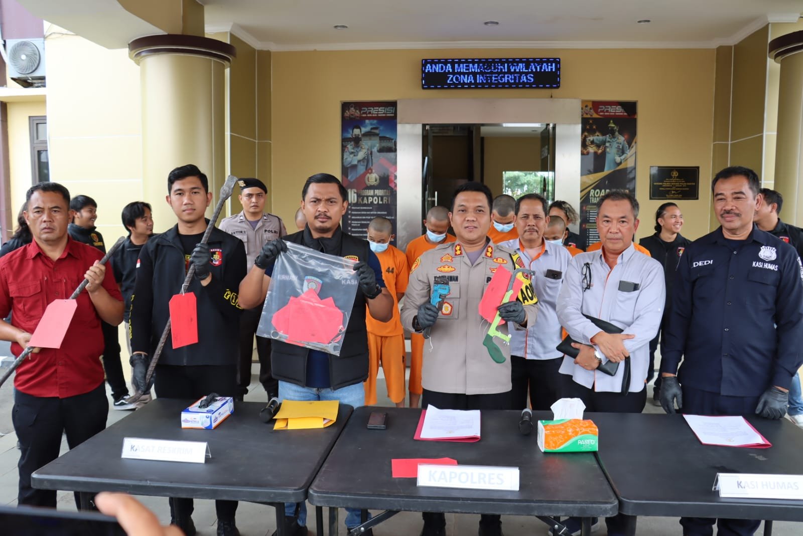 “Dari informasi tersebut Tim Resmob segera melakukan olah TKP,” terang Kapolres didampingi Kasatreskrim AKP Andi Kurniady ES dan Kasihumas Iptu Dedi Jumhaedi dan Menejemen PT Astra Infra Tamer.
