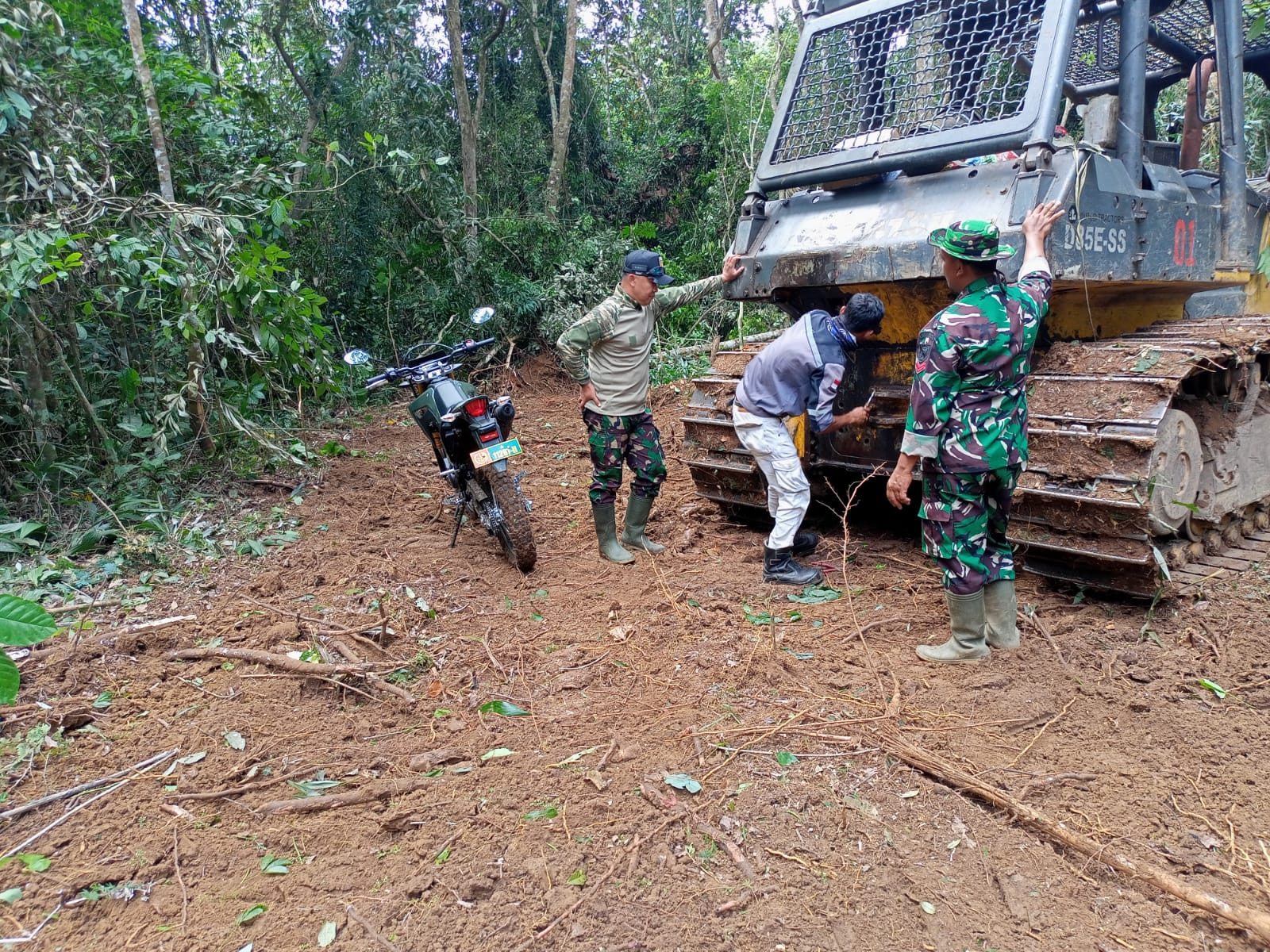 Salah satu anggota Satgas TMMD Ke-117 Kodim 0416/Bute Koptu Henri bersama operator alat berat selalu mengecek kesiapan alat berat yang akan digunakan.