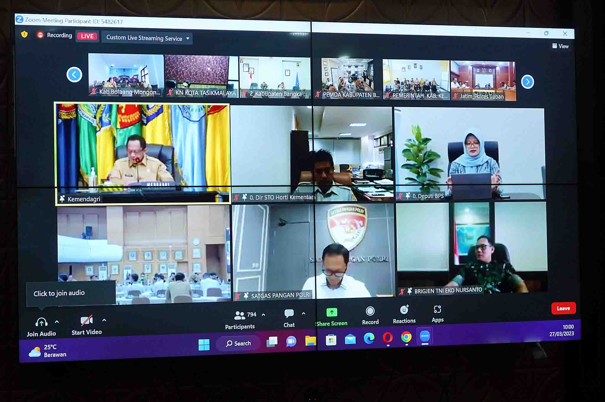 NASIONALXPOS.CO.ID, MINUT – Bupati Minahasa Utara (Minut) Joune J.E. Ganda, S.E., MAP., M.M., M.Si., didampingi Sekretaris Daerah Ir. Novly G. Wowiling, M.Si dan bersama Tim Pengendali Inflasi Daerah (TPID) mengikuti Rapat Koordinasi Rakor) bersama Menteri Dalam Negeri (Mendagri) RI, Jenderal Polisi Prof. Drs. H. Muhammad Tito Karnavian, M.A., Ph.D., secara virtual, Senin (27/3/2023).