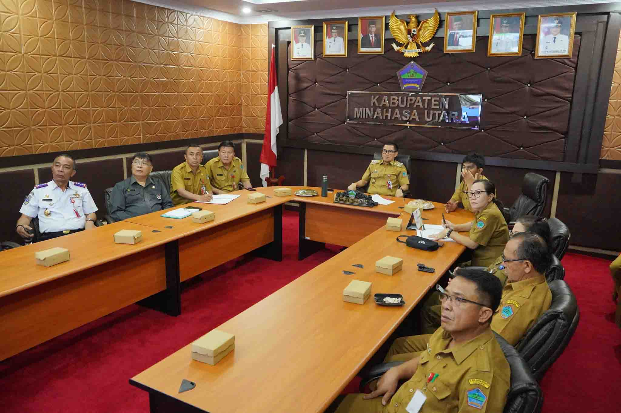 NASIONALXPOS.CO.ID, MINUT – Bupati Minahasa Utara (Minut) Joune J.E. Ganda, S.E., MAP., M.M., M.Si., didampingi Sekretaris Daerah Ir. Novly G. Wowiling, M.Si dan bersama Tim Pengendali Inflasi Daerah (TPID) mengikuti Rapat Koordinasi Rakor) bersama Menteri Dalam Negeri (Mendagri) RI, Jenderal Polisi Prof. Drs. H. Muhammad Tito Karnavian, M.A., Ph.D., secara virtual, Senin (27/3/2023).