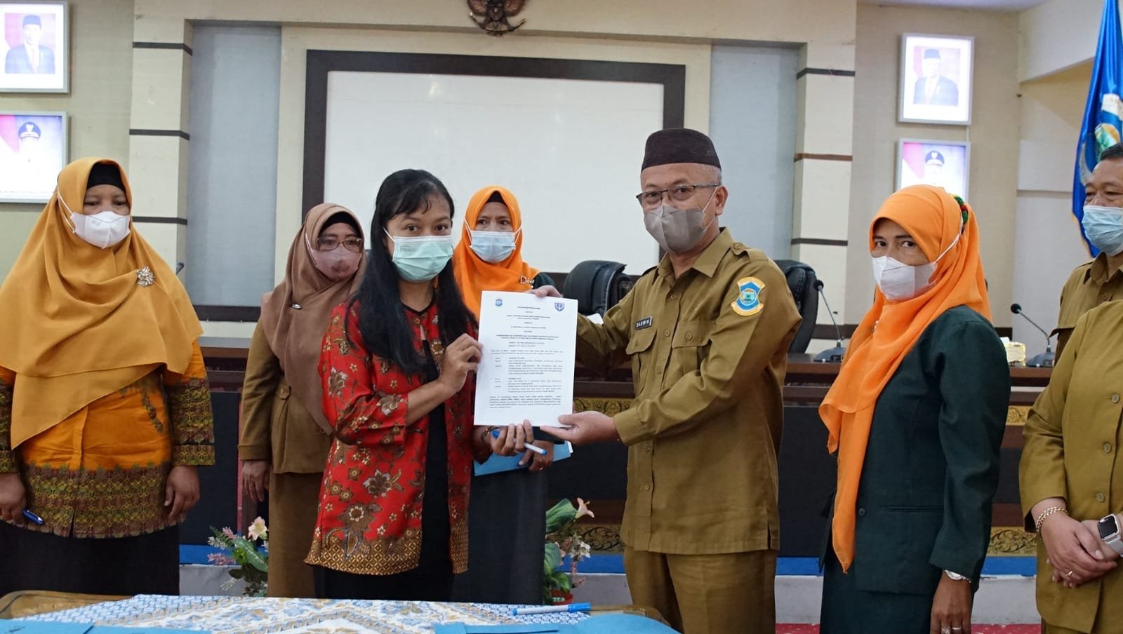 NASIONALXPOS.CO.ID, PANGKALPINANG — Sekretaris Daerah Kota Pangkalpinang, Radmida Dawam menghadiri acara penandatanganan perjanjian kerja sama Sekolah Ramah Anak (SRA) antara Dinas Pendidikan dan Kebudayaan dengan Dinas Kependudukan dan Pencatatan Sipil Kota Pangkalpinang di Ruang OR Kantor Wali Kota Pangkalpinang, Selasa (12/4/2022).