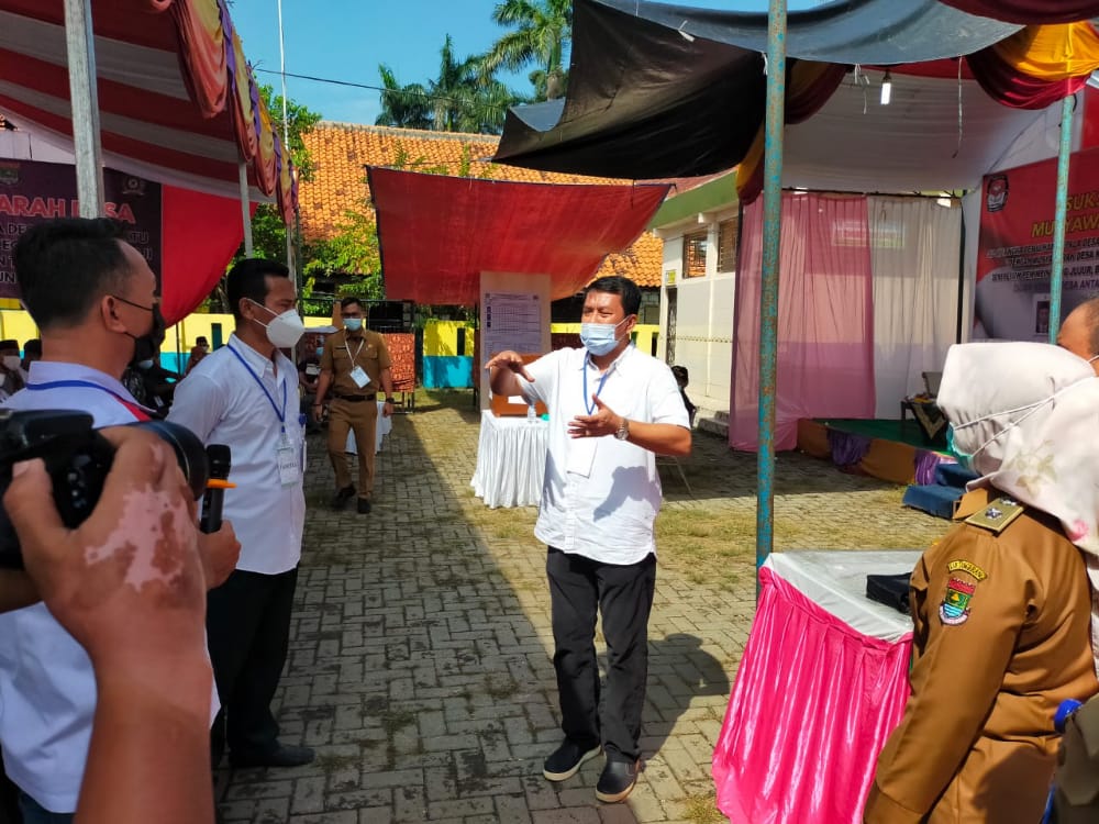 Sekda hadir di Desa Laksana Kecamatan Pakuhaji pelaksanaan pemilihan berjalan lancar dengan protokol kesehatan, lanjut ke pemilihan di Desa Rawa Boni Kecamatan pakuhaji dan Desa Lebak wangi.