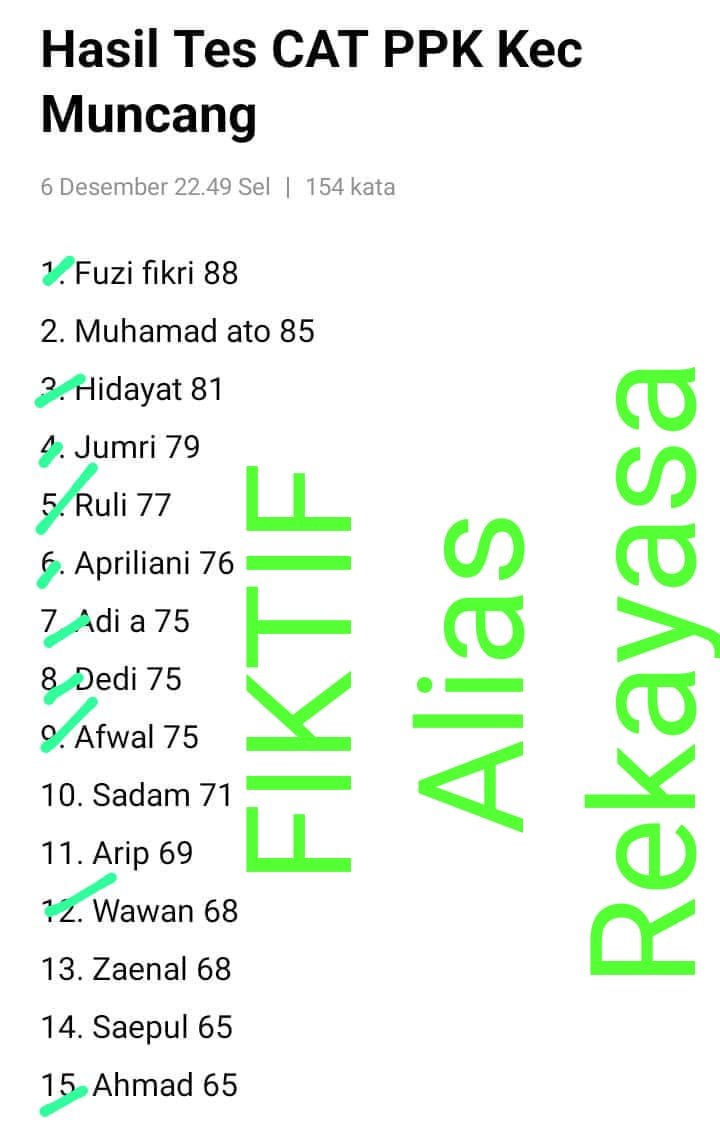 “Sejauh ini saya belum pernah mempertanyakan permasalahan tersebut, bahkan selain nilai terendah, ada juga dari prades yang menjadi anggota PPK Kecamatan Muncang, kalo menurut penjelasan Bupati, kan tidak boleh double job, sedangkan dari DKPP boleh, saya juga bingung” ungkap Ato Ilahi, dipenghujung telphone whatsap.