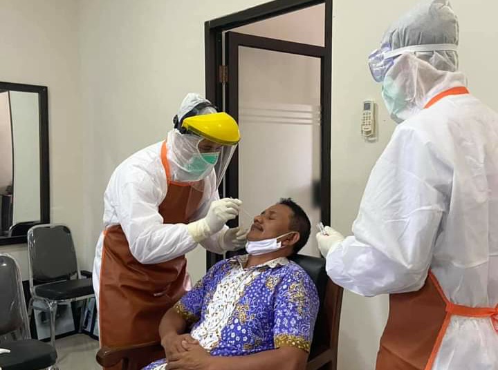 Tes Swab atau pengambilan sampel lendir dilakukan di salah satu ruangan gedung DPRD, oleh empat tenaga kesehatan, yang dipimpin oleh kepala Laboratorium Kesehatan Kabupaten Blora, Sri Purminingsih.