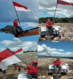Aksi Semangat 45 ditunjukan Kepala Dinas (Kadis) Lingkungan Hidup (DLH) Kota Manado, Franky Porawouw, yang mengibarkan Sang Saka Merah Putih di puncak Tempat Pembuangan Akhir (TPA) Sumompo.
