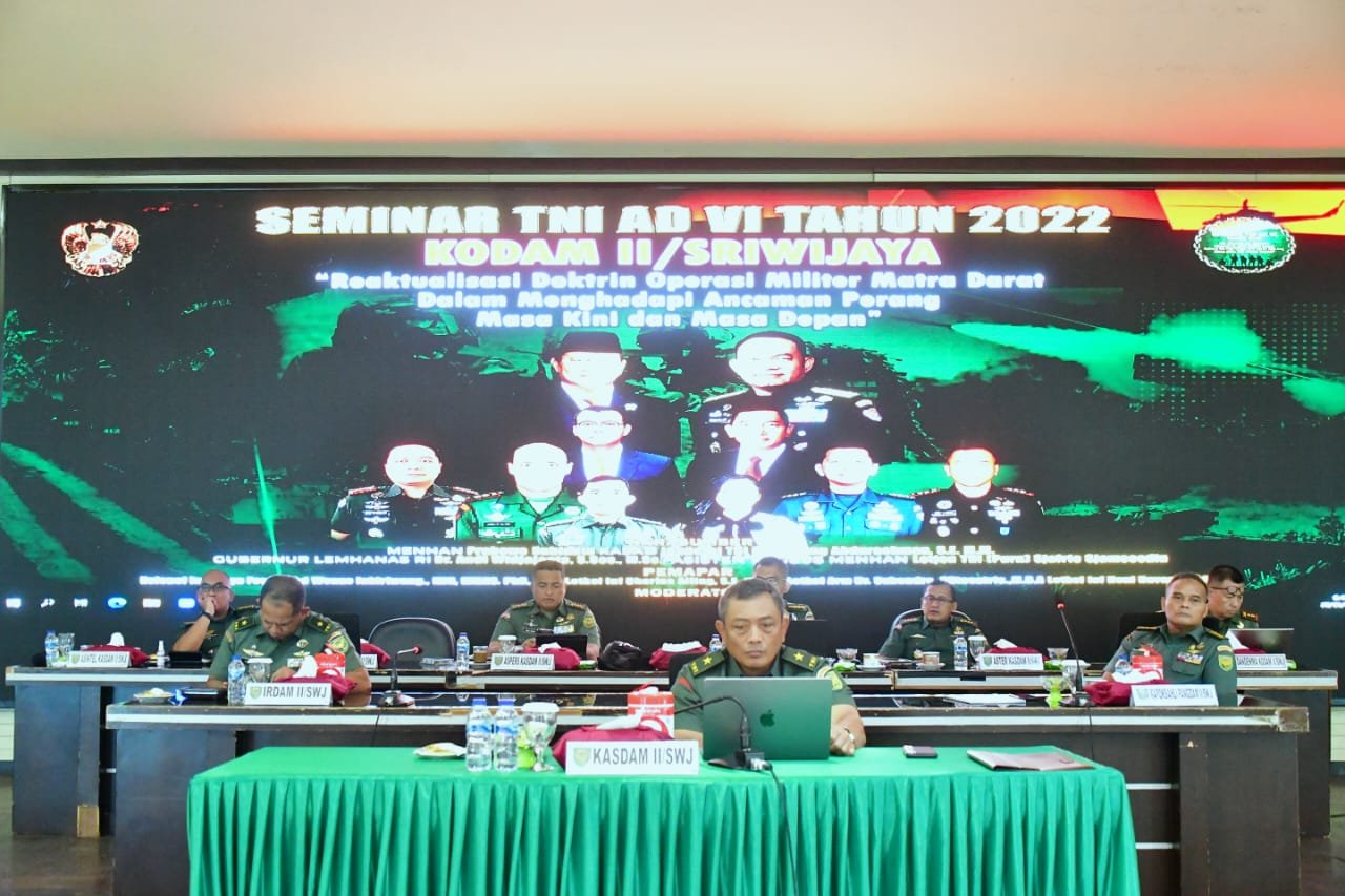 NASIONALXPOS.CO.ID, PALEMBANG – Seminar TNI AD tahun 2022, merupakan seminar keenam yang digelar oleh TNI AD. Seminar yang mengusung tema, “Reaktualisasi Doktrin Operasi Militer Matra Darat Dalam Menghadapi Ancaman Perang Masa Kini dan Masa Depan” ini, dibuka langsung oleh Kasad Jenderal TNI Dr. Dudung Abdurachman S.E M.M, Senin (27/6/2022) kemarin.
