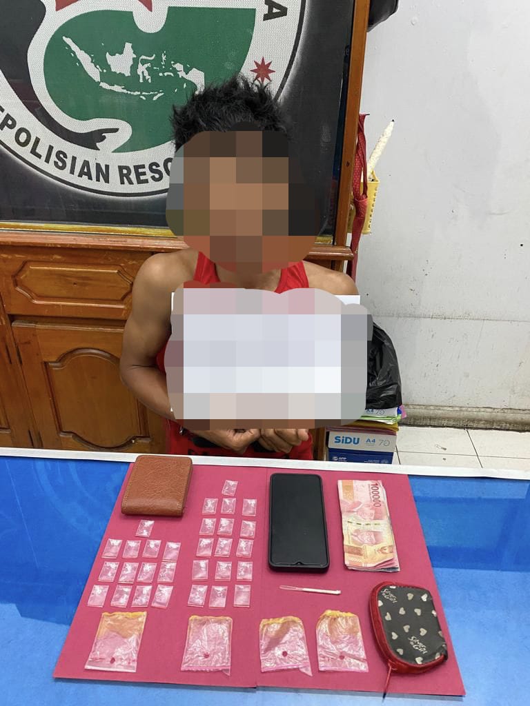 Dari hasil penangkapan dan penggeledahan, tim berhasil mengamankan sejumlah barang bukti yang menjadi alat bukti kuat atas aktivitas ilegal yang dilakukan oleh pelaku. Barang bukti yang berhasil diamankan antara lain 29 paket kecil narkotika jenis sabu-sabu dengan berat bruto 5,03 gram, 4 (empat) lembar plastik klip bekas, 1 (satu) buah sendok pipet, 1 (satu) buah dompet kecil warna hitam, uang tunai Rp. 750.000,- (tujuh ratus ribu rupiah), 1 (satu) buah dompet kecil warna coklat, 1 (satu) unit HP OPPO A16 warna biru. Setelah di interogasi pelaku juga mengakui bahwa barang bukti yang ditemukan adalah miliknya dan disiapkan untuk diperjualbelikan.