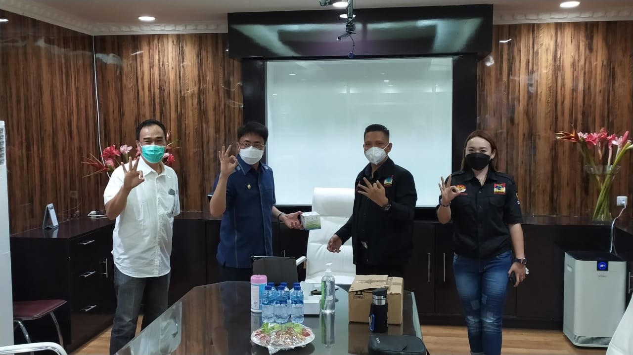 Penyerahan Masker dan Handzanitiser Oleh Wakil Ketua KAGAMA Sulut, Agus Santoso Budiharso dan Ketua Manado Barmas Michael Salim disambut terima langsung Walikota Manado Andrei Angouw didampingi Kepala Dinas Komunikasi dan Informasi, Erwin Kontu serta Ketua Media Center AARS Steven Rondonuwu diruang kerja Walikota Manado.