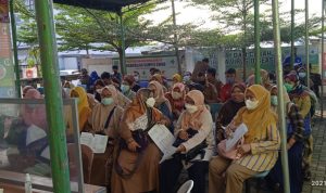 para guru yang di vaksinasi sebanyak 180 orang dari tiga desa di wilayah kecamatan. cikarang utara.