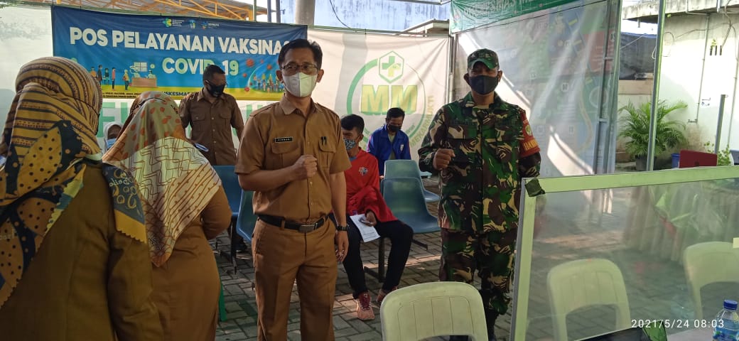 NASIONALXPOS CO.ID, BEKASI – Babinsa Desa Mekarmukti, Serda Achmad Sahuri melaksanakan kegiatan pemantauan vaksinasi pertama bagi para guru untuk 3 desa khususnya kecamatan cikarang utara.