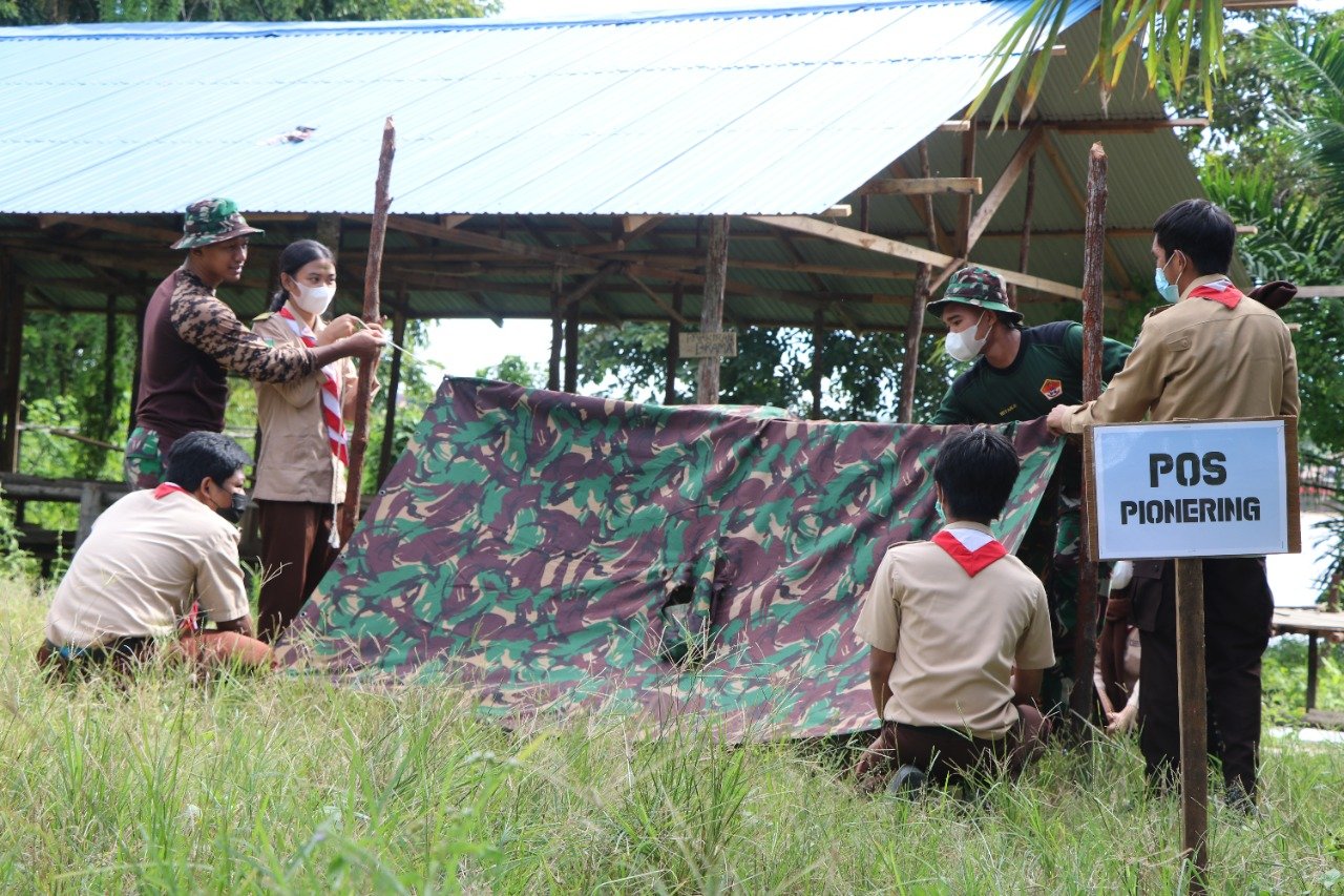NASIONALXPOS.CO.ID, SINTANG, KALBAR – Serda Marselino, Anggota Kodim 1205/Sintang memberikan materi cara mendirikan tenda yang baik dan benar kepada anggota Pramuka di kegiatan pembinaan Pramuka Saka Wira Kartika (SWK) di Makodim Sintang, pada Sabtu (12/6/2021).