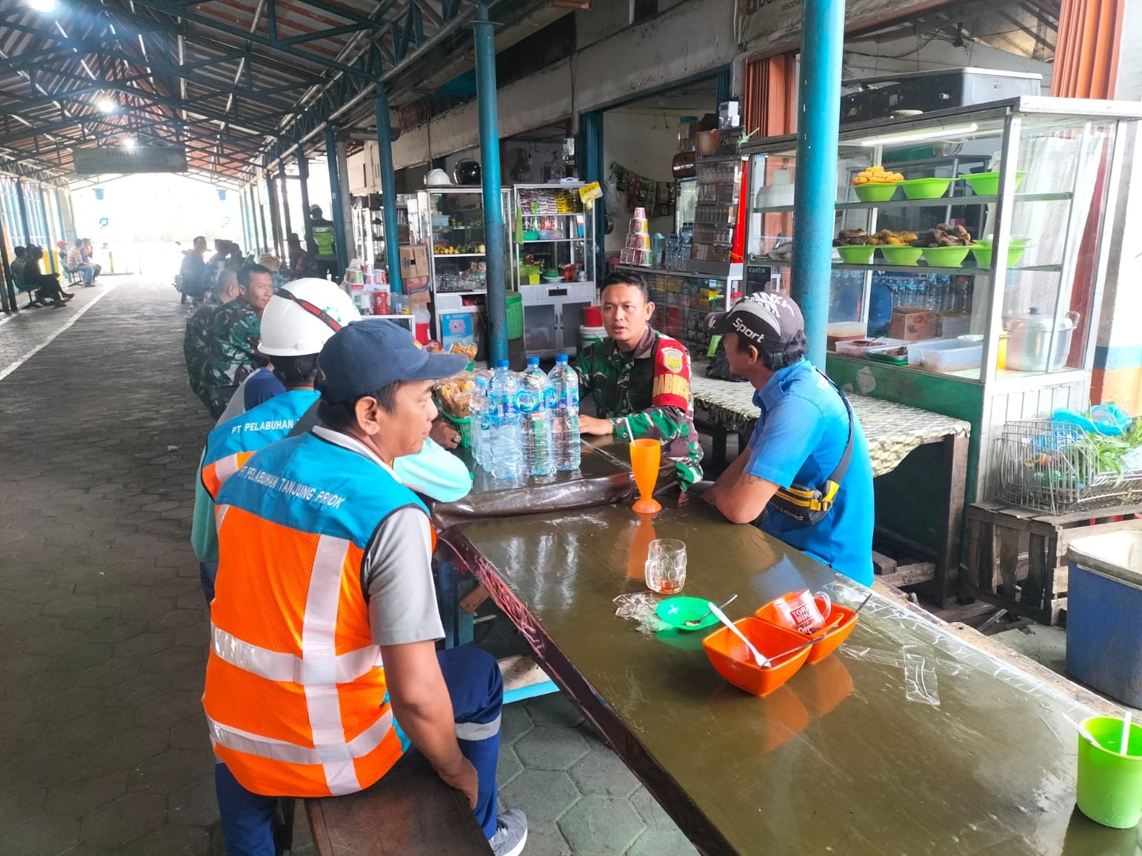NASIONALXPOS.CO.ID, PALEMBANG – Babinsa Kelurahan Demang Lebar Daun Koramil 418-02/Pakjo Serda Sofiyan, melaksanakan Komsos dengan para pekerja Pelabuhan Pelindo Boom Baru, Jum’at (19/5/2022).