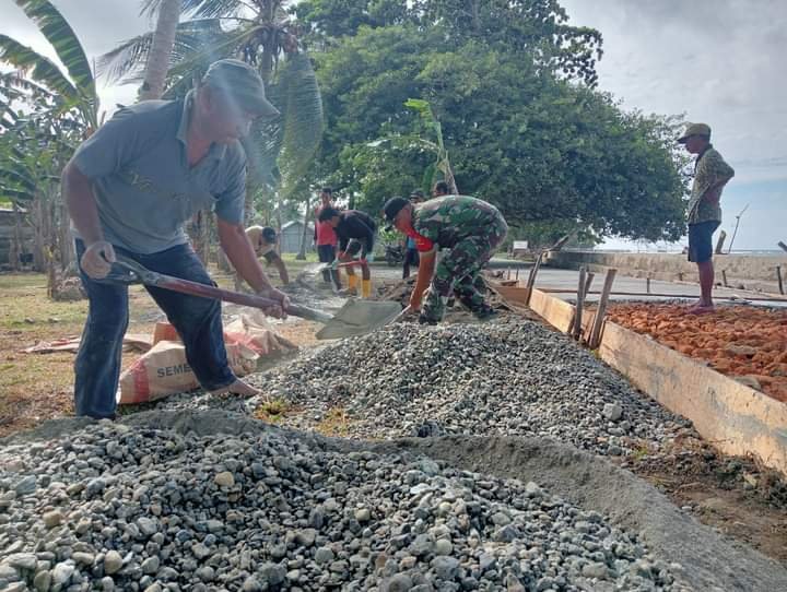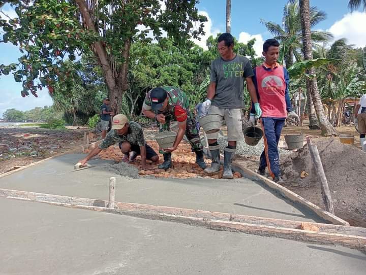 Sertu Bakri Bersama Masyarakat Binaan kerja Bakti Buat Jalan Rabat Beton