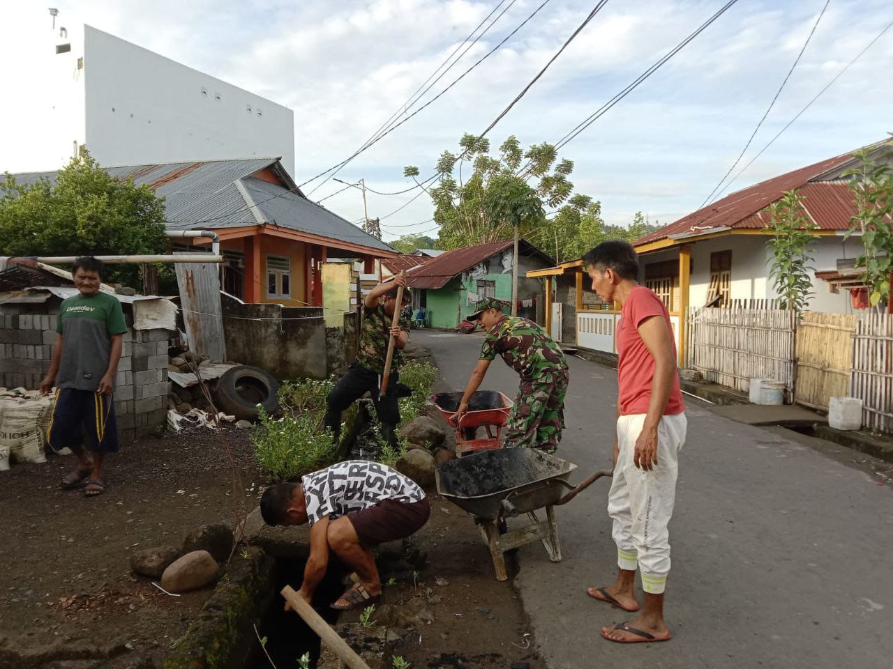 Babinsa1302-14 Amurang, Sersan Satu ( Sertu ) Kusnadi mengajak Masyarakat binaannya untuk melaksanakan karya bakti pembersihan selokan di Kelurahan Ranoiyapo, Kecamatan Amurang, Kabupaten Minahasa Selatan, Provinsi Sulawesi Utara, pada Kamis 24/04/2022 pukul 07.00 wita.