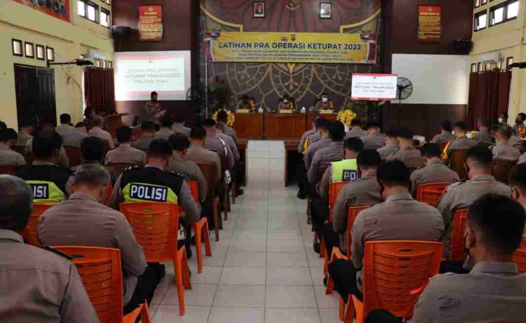 TEBO, NASIONALXPOS CO.ID – Jelang Hari Raya Idul Fitri 1443 Hijriah / 2022 Polres Tebo menggelar Latihan Pra Operasi Ketupat 2022 bertempat di Gedung Aula Polres Tebo, Selasa (26/4) pagi.