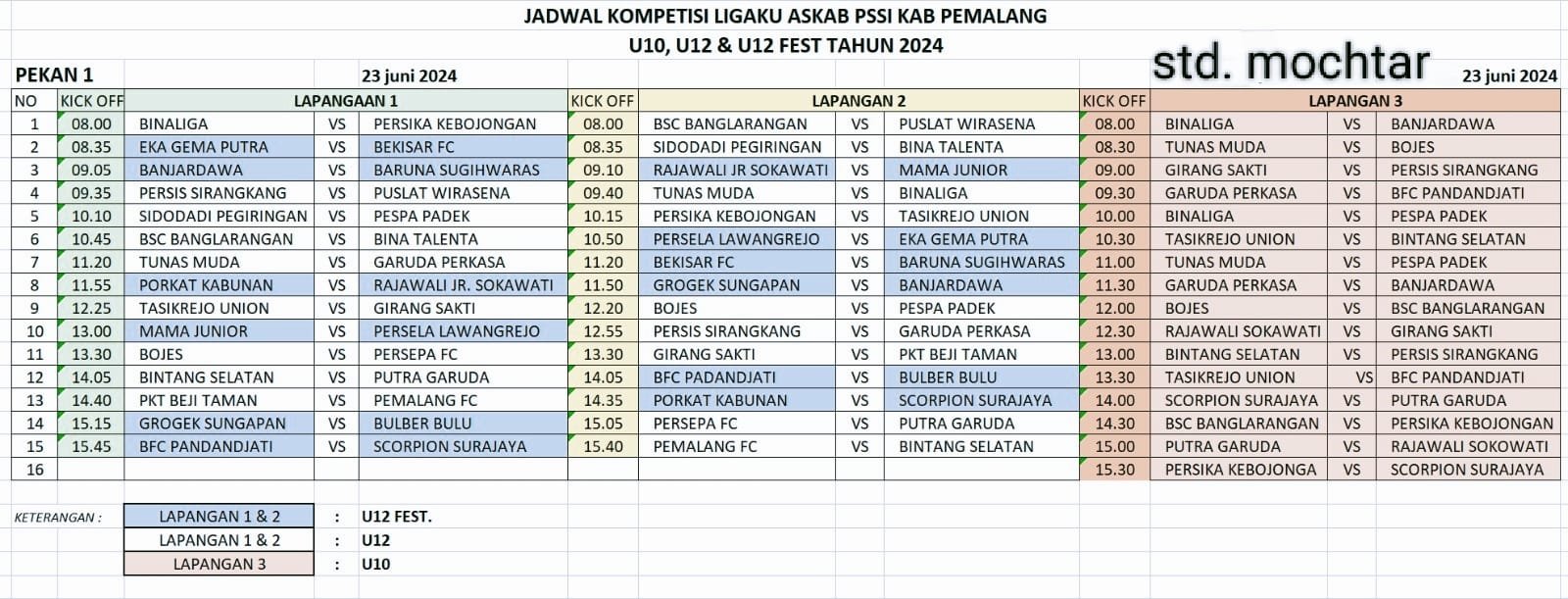 Beranda Olahraga Simak Jadwal Kompetisi Ligaku Askab PSSI Pemalang U10-U12 & U12 Fest Tahun 2024 OlahragaSimak Jadwal Kompetisi Ligaku Askab PSSI Pemalang U10-U12 & U12 Fest Tahun 2024Admin1 min bacaJuni 19, 2024Juni 22, 20241081×Simak Jadwal Kompetisi Ligaku Askab PSSI Pemalang U10-U12 & U12 Fest Tahun 2024Sebarkan artikel ini Berikut Jadwal Ligaku Dibawah Ini : « 1 2 RekomendasiDaerahPersikaba Bangkit, Bupati Upayakan Pembangunan Stadion Kridaloka ke-Kemen PUOlahragaGubernur Jambi Cup 2026 Dibuka, Al Haris Targetkan Lahirkan Bintang Sepak Bola DaerahOlahragaTim GFA Raih Juara 1 Gyokai Football Academy Cup 2025, Ukir Sejarah Baru di TangerangOlahragaGyokai Football Academy Cup 2025 Resmi Dibuka, GFA A Menang Telak 4-0 di Laga PerdanaOlahragaTurnamen Soccer Cup Wanita Antar RT Ramaikan HUT RI ke-80 di Desa TaposOlahragaM. Fadhil Azka Raih Juara 3 Pencak Silat di POR Pelajar Kabupaten Tangerang 2025