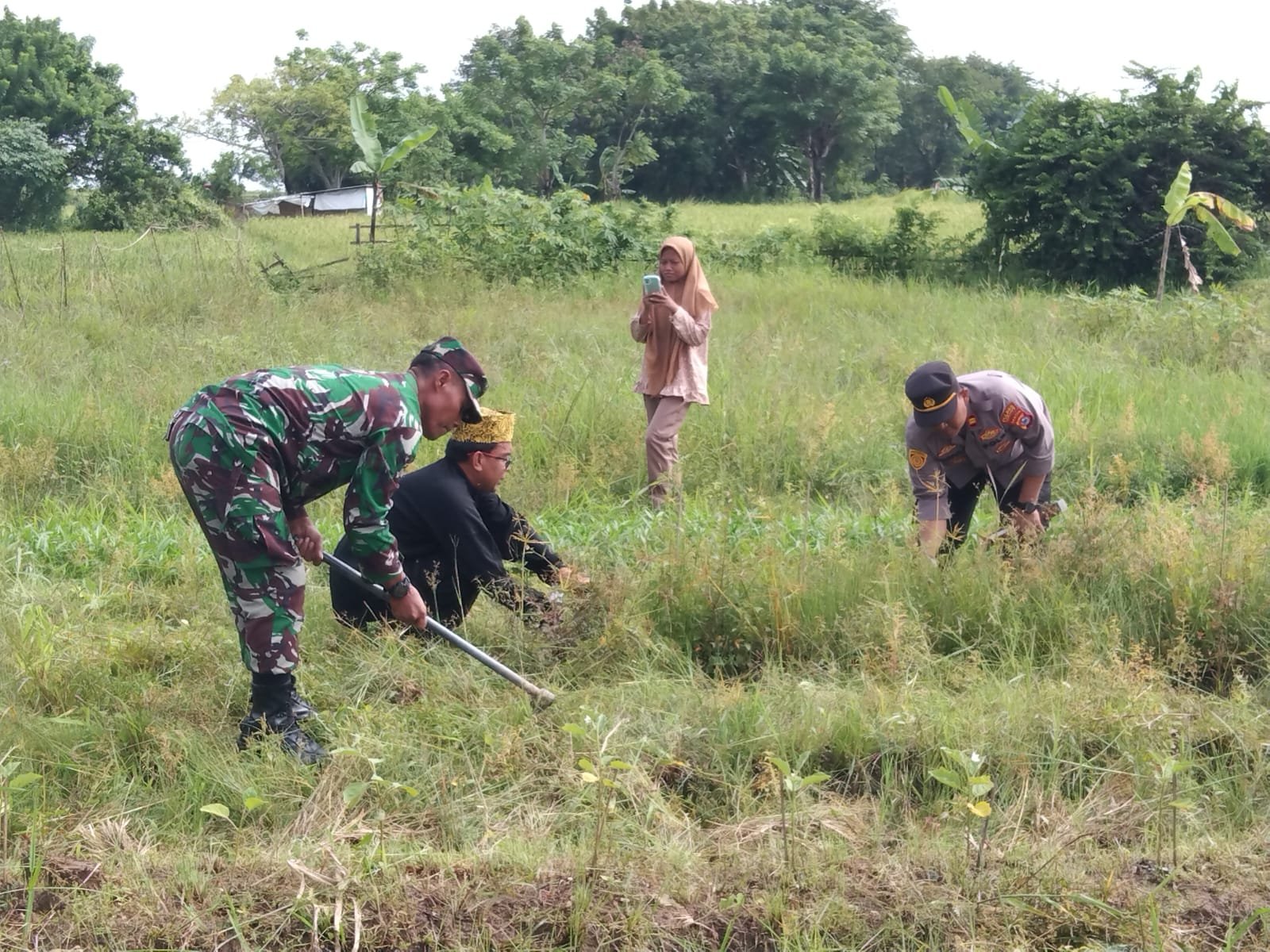 NASIONALXPOS.CO.ID, SERANG – Aparat Kepolisian Polsek Carenang, Koramil Carenang dan Pemerintahan Kecamatan Carenang bekerjasama dengan BPPKB Banten dan masyarakat Desa Teras Kecamatan Carenang, mengadakan kegiatan sinergitas TNI Polri dan pemerintah dalam upaya menyiapkan lahan Pertanian Terpadu Kecamatan. Carenang diatas lahan seluas +/- 6.000 meter² milik Pemkab Serang.