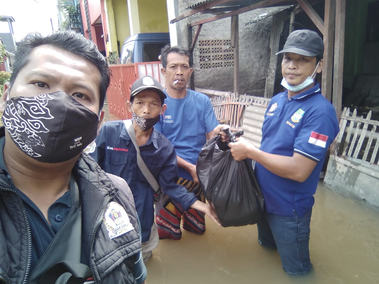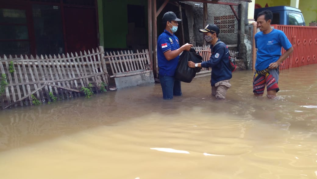 NASIONALXPOS.CO.ID, BEKASI – Dewan Pimpinan Cabang (DPC) Asosiasi Wartawan Profesional Indonesia (AWPI) Kabupaten Bekasi dan Karang Taruna unit Rw.003 Jatimulya bagikan nasi bungkus di beberapa titik warga terdampak banjir di wilayah kelurahan Jatimulya, Kecamatan Tambun Selatan, Kabupaten Bekasi, Jawa Barat, (20/2/2021).