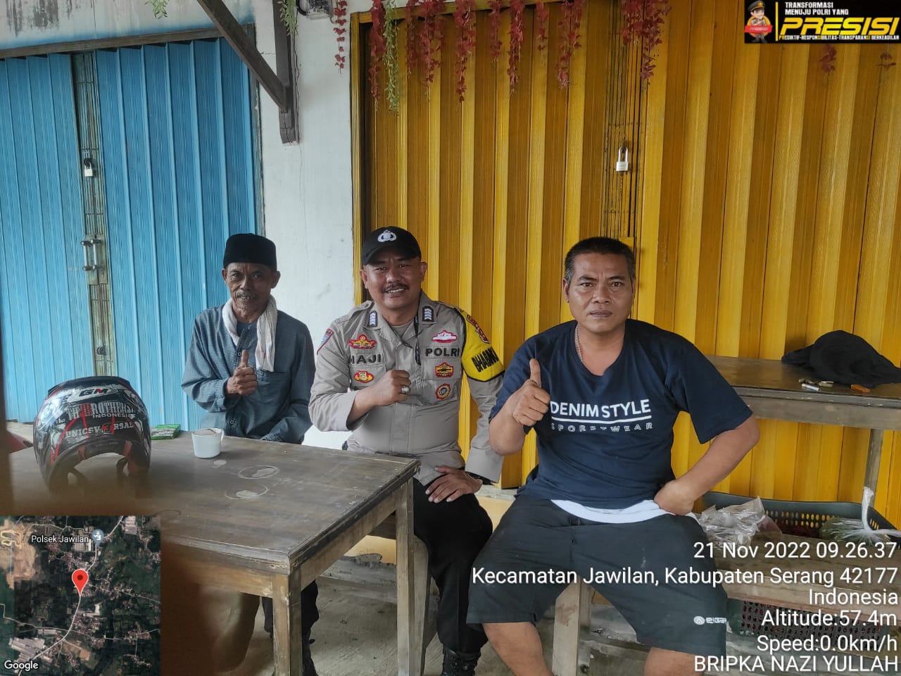 NASOPNALXPOS.CO.ID, SERANG – Anggota Bhabinkamtibmas Polsek Jawilan Polres Serang terus melakukan sambang desa binaan dan tak henti-hentinya mengingatkan kepada warga masyarakat untuk waspada terhadap gangguan kamtibmas, Senin (22/11/2022).