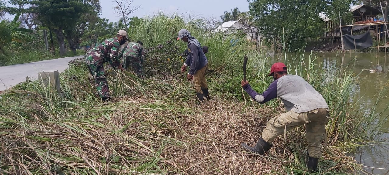 Kegiatan yang di awali dengan apel pagi yang di lanjut dengan pembersihan bantaran sungai anak Kali Citarum di wilayah Kp.Muara Gembong RT 001/RW 003 Desa Pantai Mekar Kec. Muara Gembong Kabupaten Bekasi, Jawa Barat.