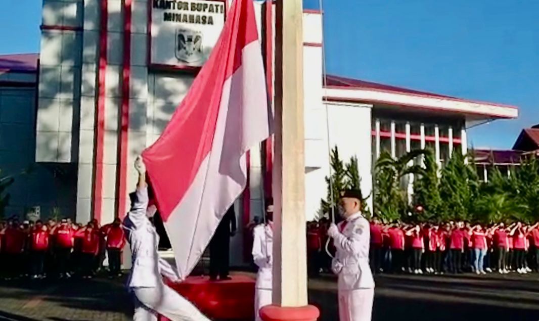 Upacara ditandai dengan pengibaran Sang Merah Putih oleh 3 siswa Paskibraka Minahasa, dilanjutkan dengan pembacaan Teks Pancasila oleh Inspektur Upacara dan pembacaan naskah Pembukaan UUD 1945 oleh ASN Anjastyo Wurangian, SSTP.