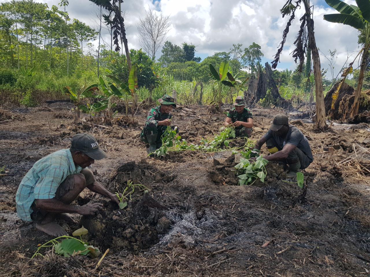 “Kami bantu warga buka lahan sekaligus turut menanam tanaman pangan guna pemenuhan kebutuhan pangan dan meningkatkan ekonomi warga,” imbuhnya.