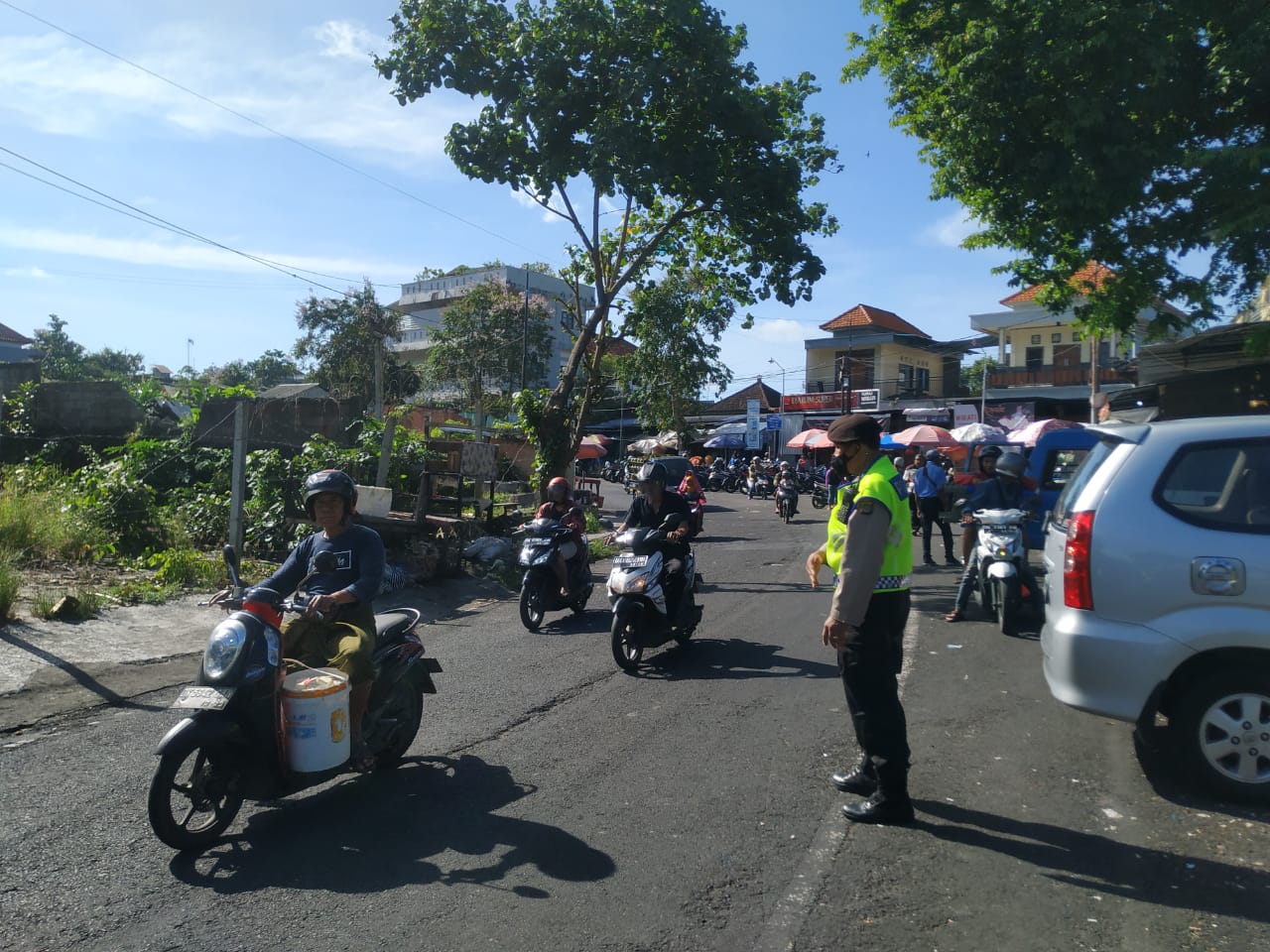 Tabanan Police Holds Patrols, Prevents Disorders of Public Order and Monitors Groceries at the Dauh Pala Market