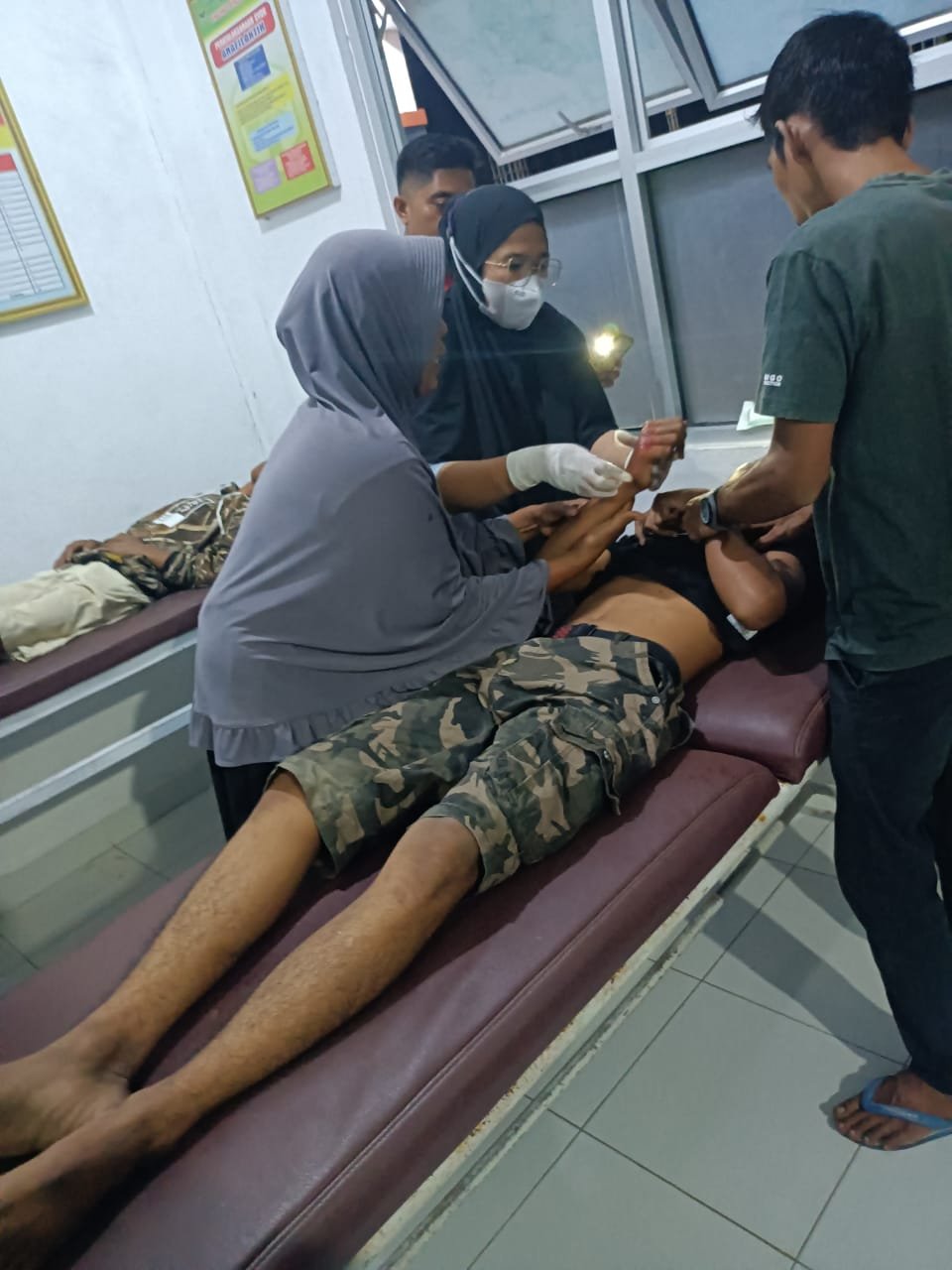 Korban mengendarai motor vario terpeleset masuk lubang yang mengangga itu, Sehingga pria yang harusnya pulang dengan kondisi sehat itu, mengalami luka berat.