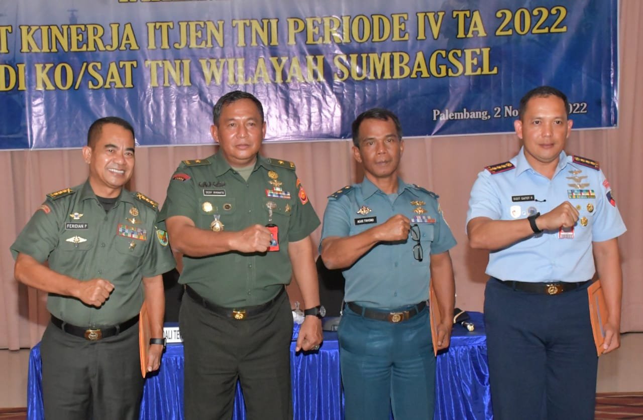 NASIONALXPOS.CO.ID, PALEMBANG – Kegiatan Taklimat Akhir Audit Kinerja Itjen TNI Periode IV TA. 2022 Satuan Komando/Satuan TNI di Wilayah Sumbagsel telah berlangsung di Gedung Bima Sakti Convention Center Lanud SMH Jalan Adi Sucipto Kelurahan Talang Betutu, Kecamatan Sukarami Kota Palembang, Rabu (2/11/2022).