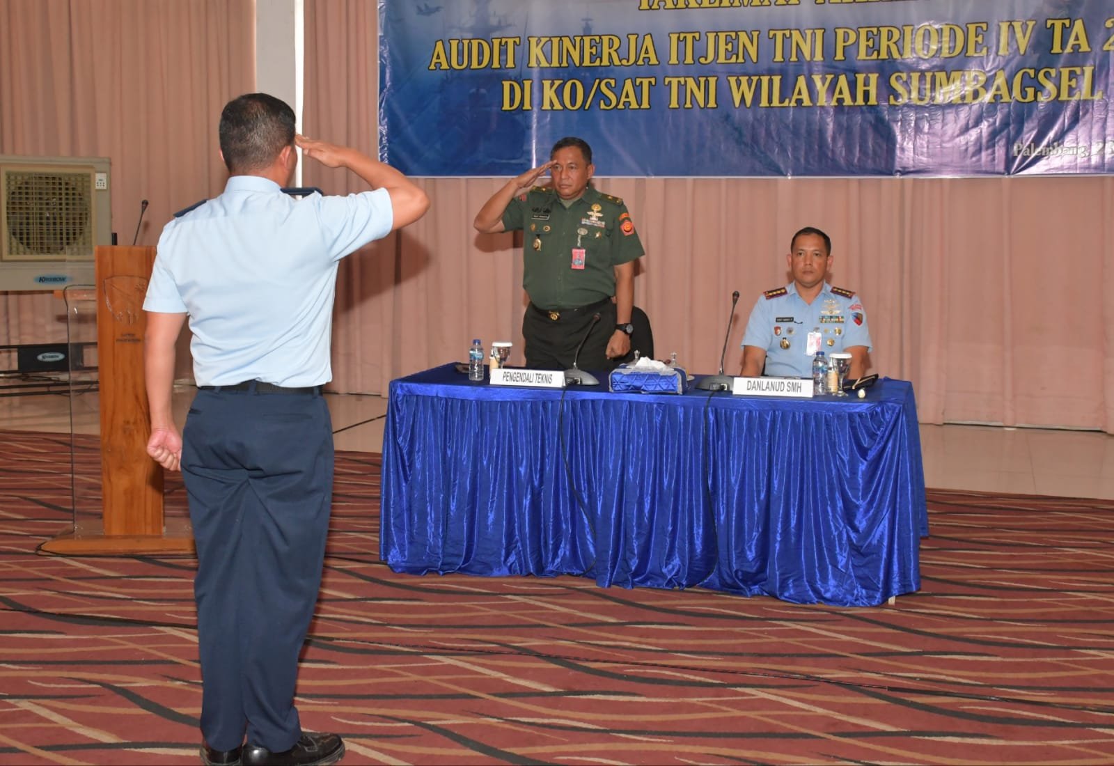 NASIONALXPOS.CO.ID, PALEMBANG – Kegiatan Taklimat Akhir Audit Kinerja Itjen TNI Periode IV TA. 2022 Satuan Komando/Satuan TNI di Wilayah Sumbagsel telah berlangsung di Gedung Bima Sakti Convention Center Lanud SMH Jalan Adi Sucipto Kelurahan Talang Betutu, Kecamatan Sukarami Kota Palembang, Rabu (2/11/2022).
