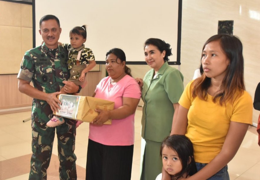 Acara penyerahan tali asih kepada anak asuh stunting binaan Kodam XIII/Merdeka sebanyak 50 anak stunting diserahkan oleh Pangdam XIII/Merdeka Mayjen TNI Denny Tuejeh dengan didampingi Ketua Persit KCK Daerah XIII/Merdeka Ny. Cicilia Evie Tuejeh beserta pengurus.