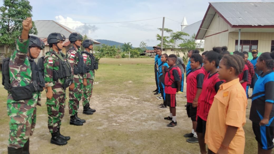 NASIONALXPOS.CO.ID, PAPUA – Bentuk perhatian Satgas Yonif Raider 142/KJ menanamkan kedisiplinan di SMP Yakpesmi, Distrik Elelim, Kabupaten Yalimo, Provinsi Papua Pegunungan, Sabtu (25/03/2023).