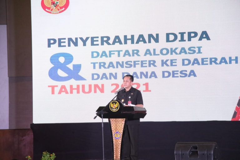NASIONAL XPOS.CO.ID MANADO |Pjs Gubernur Sulawesi Utara Agus Fatoni menyerahkan Daftar Isian Pelaksanaan Anggaran (DIPA) Kementerian/Lembaga, Daftar Alokasi Transfer ke Daerah dan Dana Desa Tahun Anggaran (TA) 2020 senilai total Rp 24,49 triliun kepada Bupati, Walikota, serta para Pimpinan Satuan Kerja Pusat dan Daerah di Wilayah Provinsi Sulut di Manado, Selasa (01/12/2020).