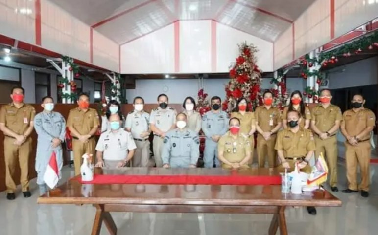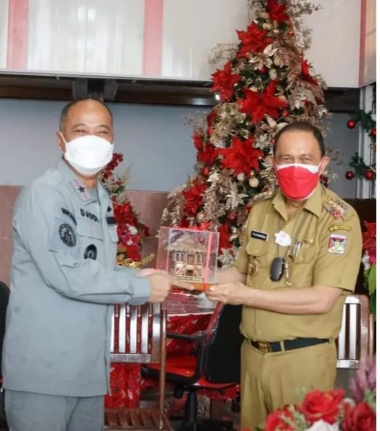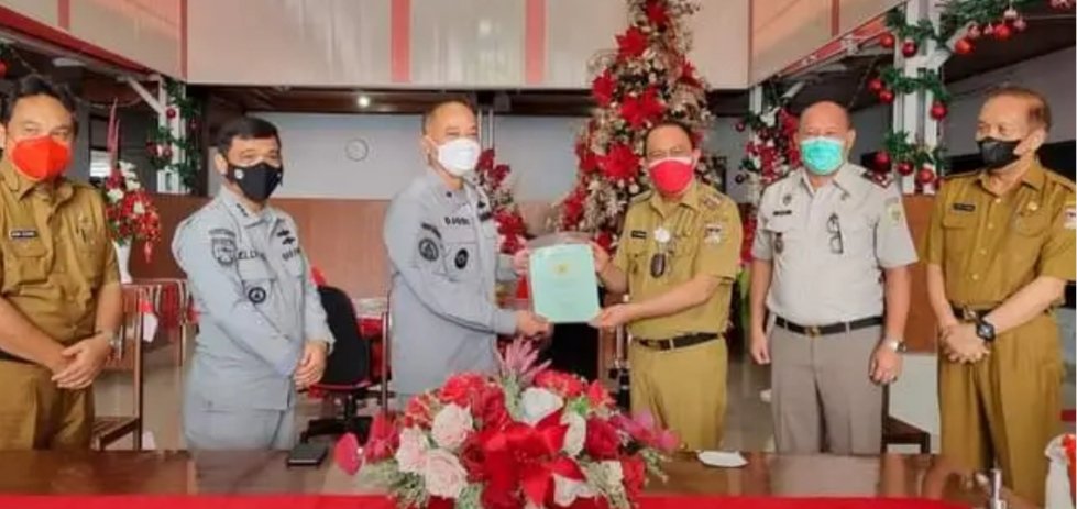 NASIONAL XPOS.CO.ID MINAHASA – Bupati Minahasa, Dr. Ir. Royke Octavian Roring, M.Si (ROR) Menyambut kunjungan kerja Kepala Kantor Badan Keamanan Laut (Bakamla) Zona Maritim Tengah, Kepala Laksamana Pertama Bakamla, Hanarko Djodi Pamungkas dalam rangka penyerahan sertifikat tanah yang merupakan hibah dari Pemerintah Propinsi Sulawesi Utara. Senin, (17/1/2022).