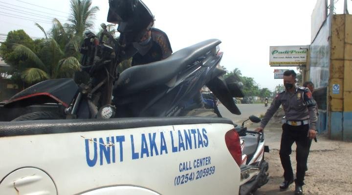 Bripka Andi S.H Anggota Unit Laka Lantas Polres Serang mendapat laporan langsung mendatangi lokasi.