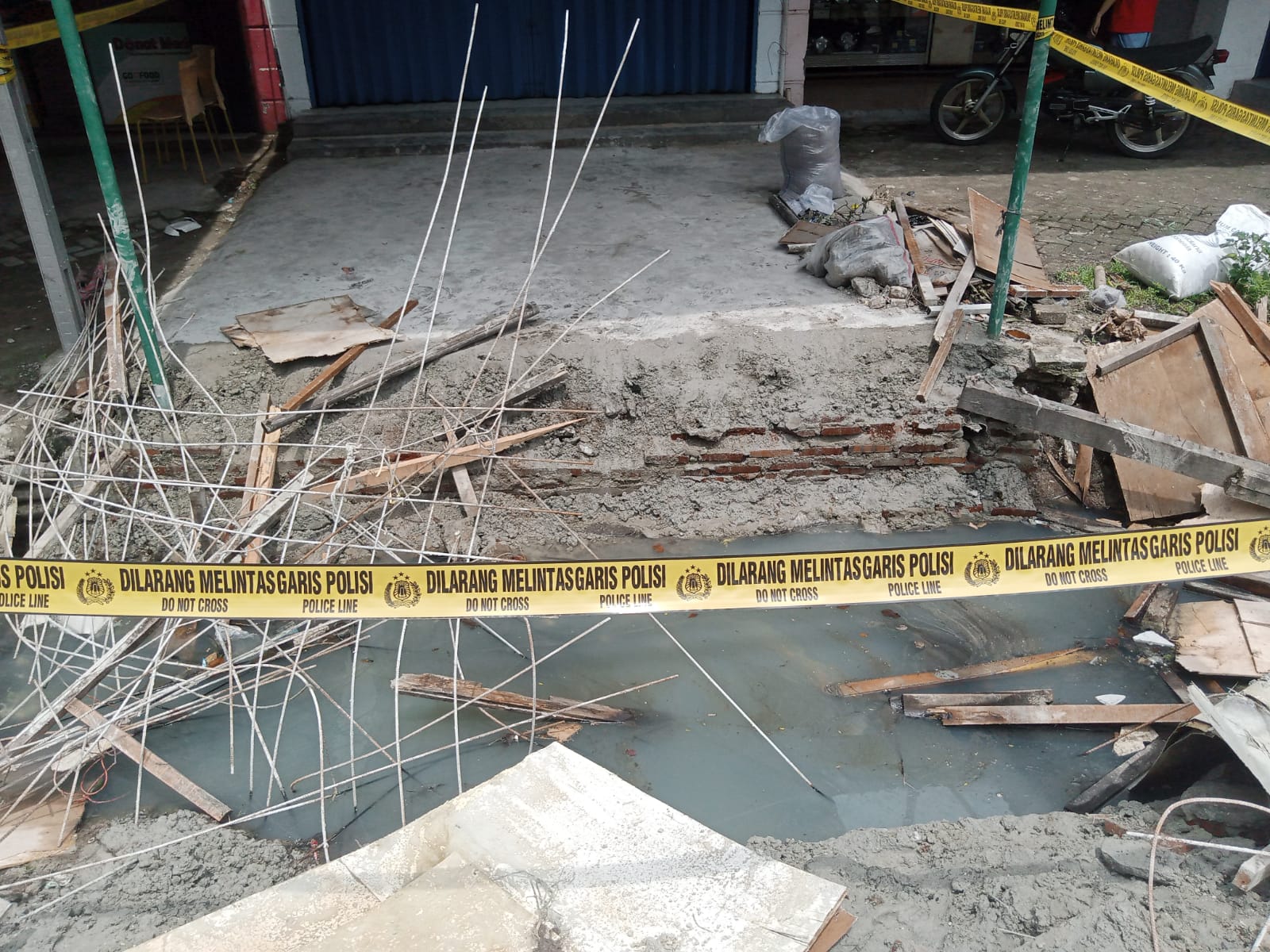 Heri Pemilik Ruko Sparepart kendaraan yang persis di sebelah Tempat Kejadian Perkara (TKP), Kamis (30/12/2021) menceritakan, kejadian tersebut terjadi kemarin Rabu 29 Desember 2021 sekira pukul 18.40 WIB pekerja pembuatan jembatan saluran air tersebut sebanyak 4 orang dua pekerja ada di kolong jembatan yang baru di cor yang dua lagi di atas.