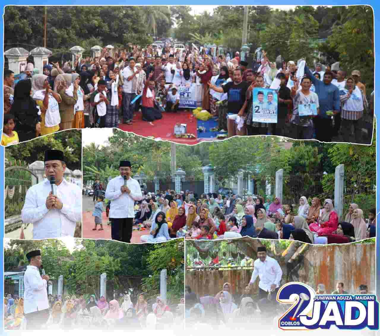 “Mari samo-samo kito masyarakat Sirih Sekapur kompak. Jangan lagi ado yang kemano-mano. Dukungan kito 27 November besok bulat ke Jumiwan Aguza – Maidani,” tegas A. Razali, tokoh masyarakat Sirih Sekapur.