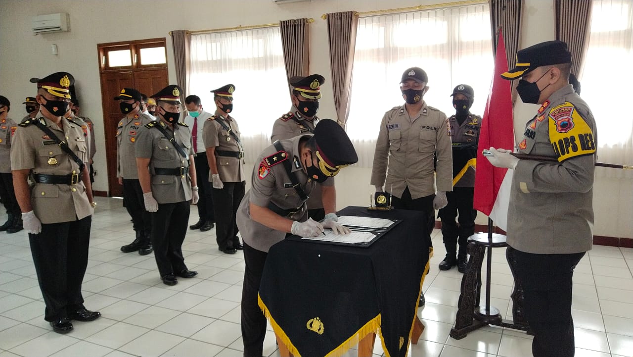 NASIONALXPOS.CO.ID, BLORA – Kapolres Blora Polda Jawa Tengah AKBP Wiraga Dimas Tama, SIK pimpin serah terima jabatan Wakapolres, Kabag Sumda dan Kapolsek Jati, Senin (5/4/2021) di Aula Arya Guna.