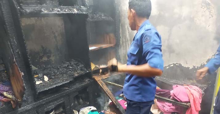 Ia menjelaskan, awalnya listrik di rumah Rahmat tiba-tiba padam. Ia menyalakan kembali. Tak berapa lama muncul api di atas atap rumah korban.